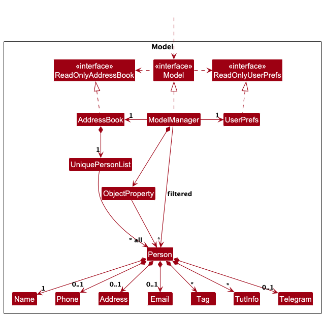 UserPrefobject that represents the user’s preferences. This is exposed to the outside as aReadOnlyUserPrefobjects. - does not depend on any of the other three components (as the