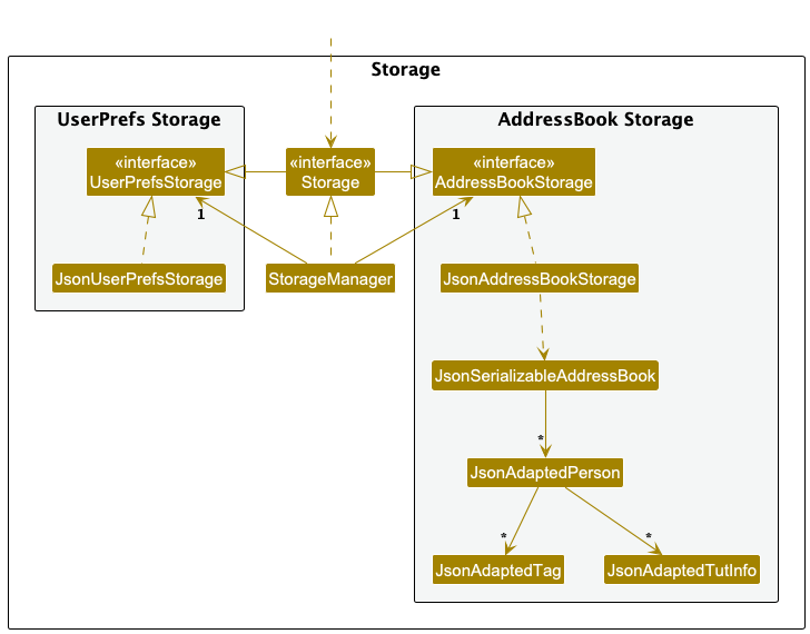 AddressBookStorageandUserPrefStorage, which means it can be treated as either one (if only the functionality of only one is needed). - depends on some classes in the